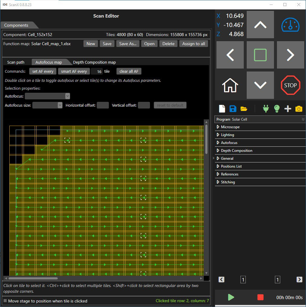 The Scan Editor provides full control over the entire scan process down to each individual image. Tasks such as Autofocus, Depth Composition, Area Exclusion, and Scan Path are defined within a map, which can be linked to any scan position.