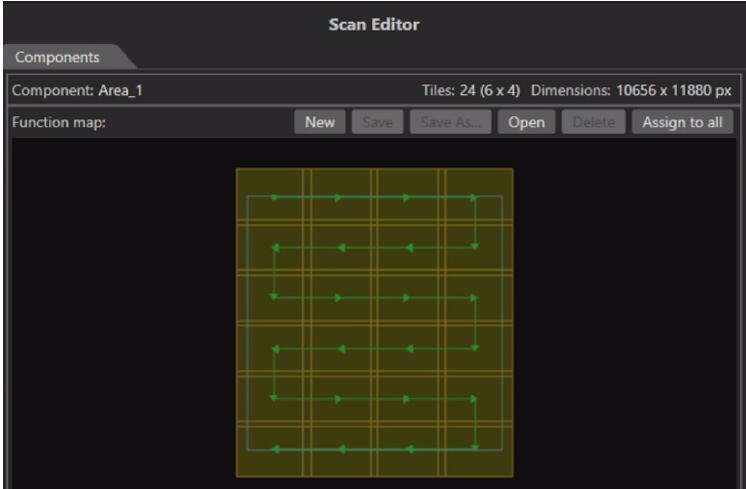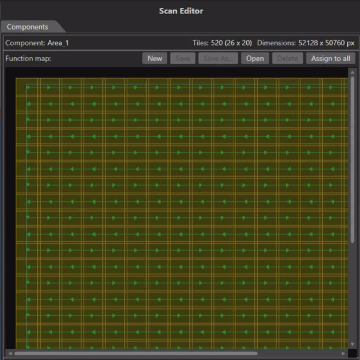 The Scan Editor provides full control over the entire scan process down to each individual image. Tasks such as Autofocus, Depth Composition, Area Exclusion, and Scan Path are defined within a map, which can be linked to any scan position.